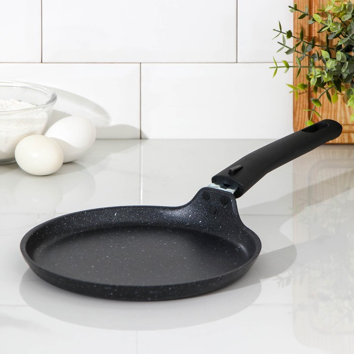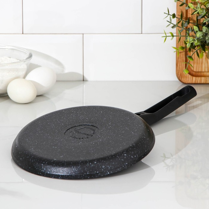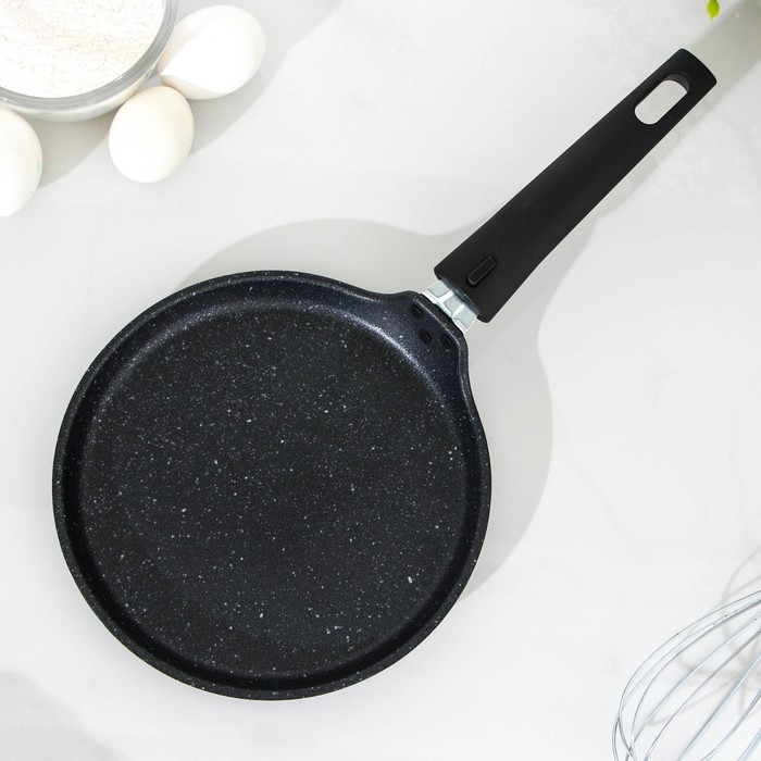 Сковорода блинная, d=20 см, пластиковая ручка, антипригарное покрытие, цвет тёмный мрамор