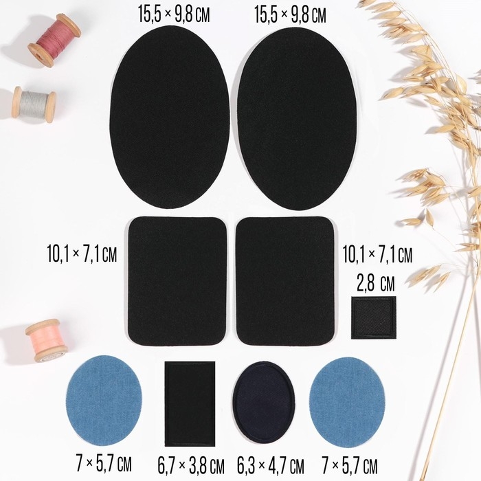 Набор заплаток для одежды, термоклеевые, 6 шт, цвет чёрный