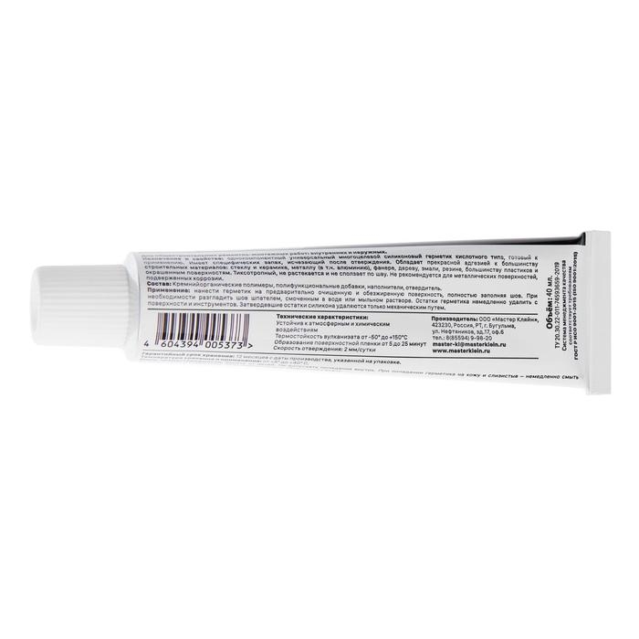 Герметик Master Klein, силиконовый, универсальный, прозрачный, 40 мл