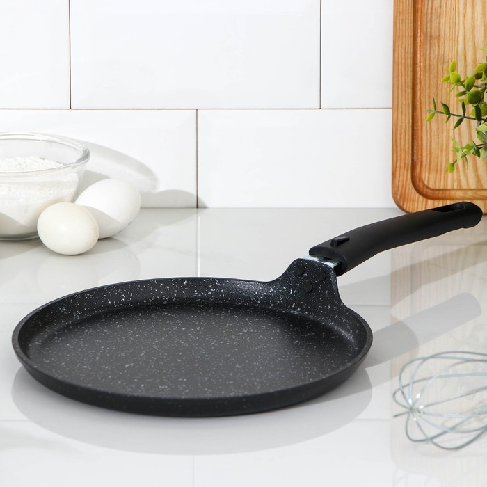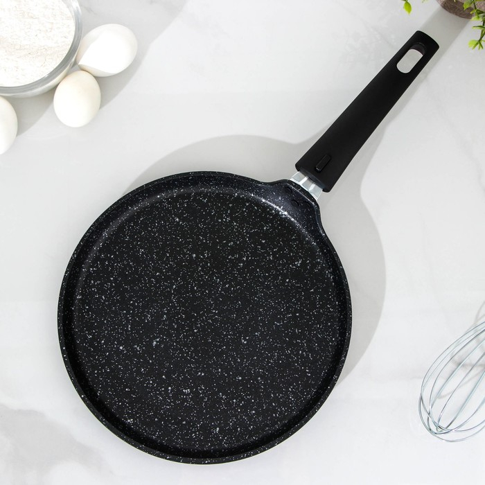 Сковорода блинная, d=24 см, пластиковая ручка, антипригарное покрытие, цвет тёмный мрамор