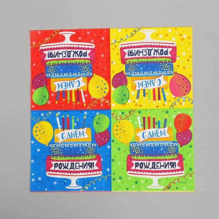 Салфетки бумажные «С ДНЁМ РОЖДЕНИЯ», 33х33 см, 20 шт.