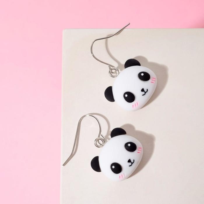 Серьги детские «Выбражулька» панды, цвет чёрно-белый в серебре
