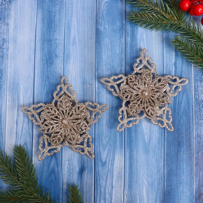 Украшение ёлочное "Звёзды кружевные блеск" (набор 2 шт) 8х10 см, золото