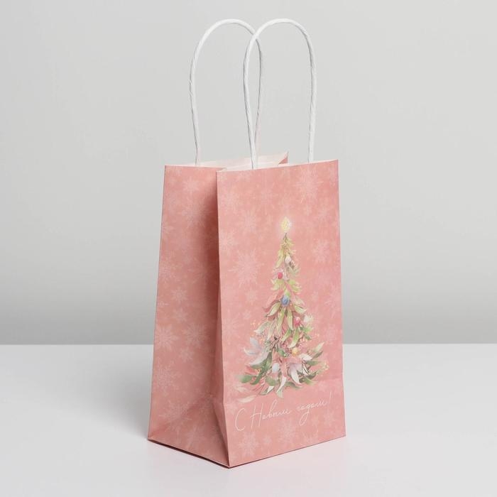 Пакет подарочный новогодний крафтовый «Новогодние сны», 12 х 21 х 9 см, Новый год