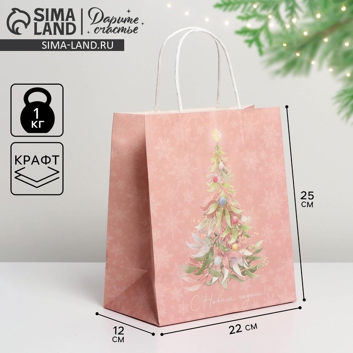 Пакет подарочный новогодний крафтовый «Новогодние сны», 22 х 25 х 12 см, Новый год