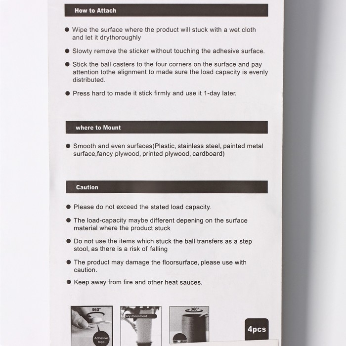 Колёсики универсальные, шарнирные, набор 4 шт
