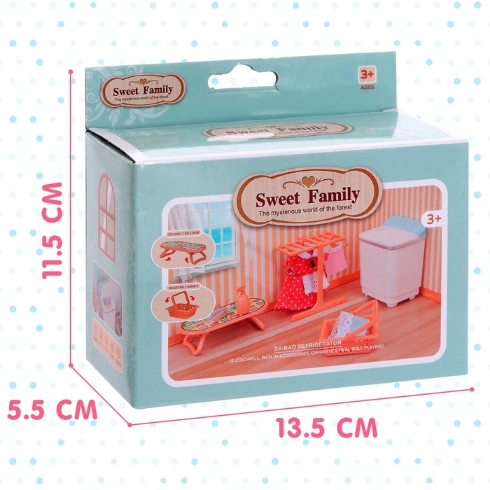 В комплект входит мебель для ванной — всё как на фото. Аксессуары для стирки, глажки помогут ребёнку навести чистоту в доме у питомцев.