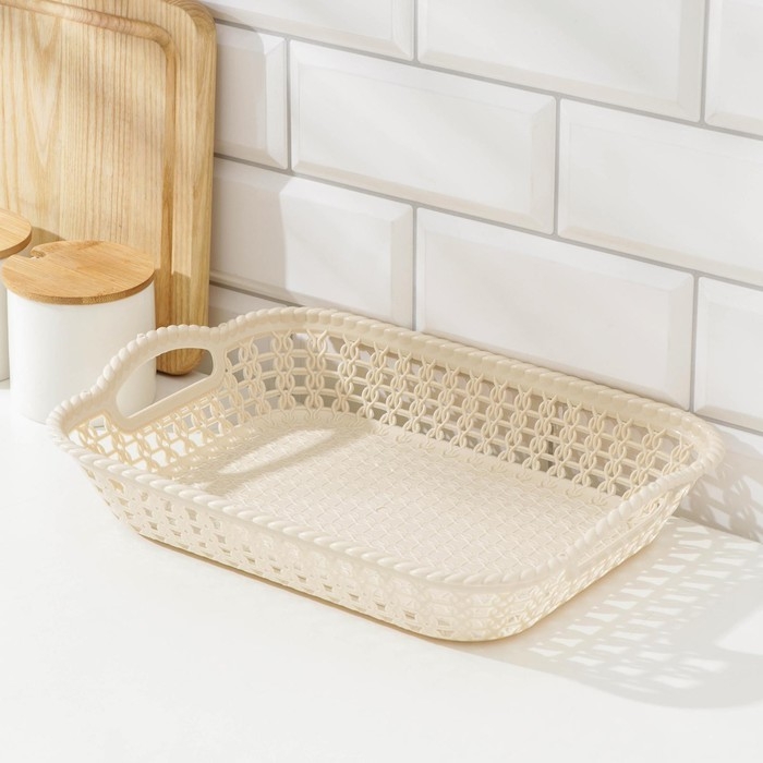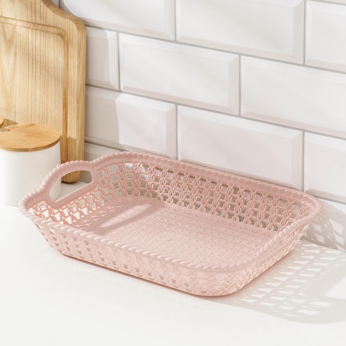 Поднос пластиковый прямоугольный Доляна «Плетение», 32×23×5 см, цвет МИКС