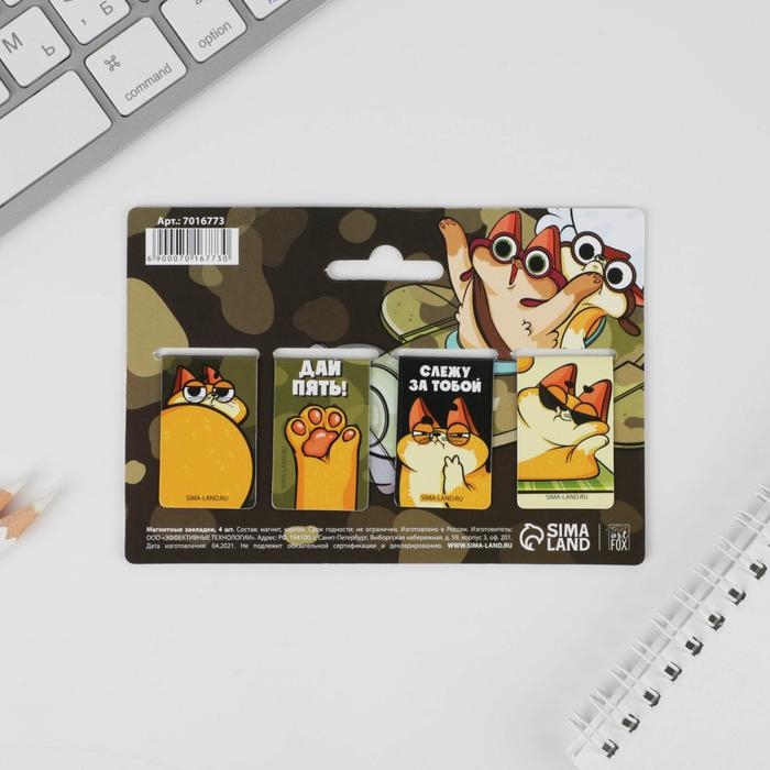 Магнитные закладки для книг, 6 шт. на подложке «Крутые»