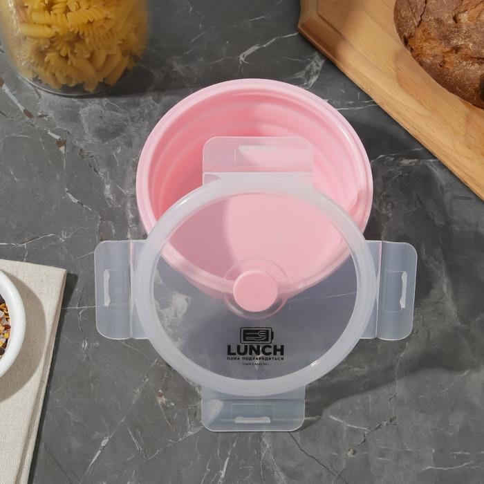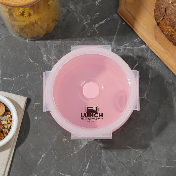 Ланч-бокс имеет круглую форму и объем 500 мл, что позволяет вместить достаточное количество пищи. Герметичная крышка с защелками обеспечивает надежное хранение пищи и предотвращает ее проливание.