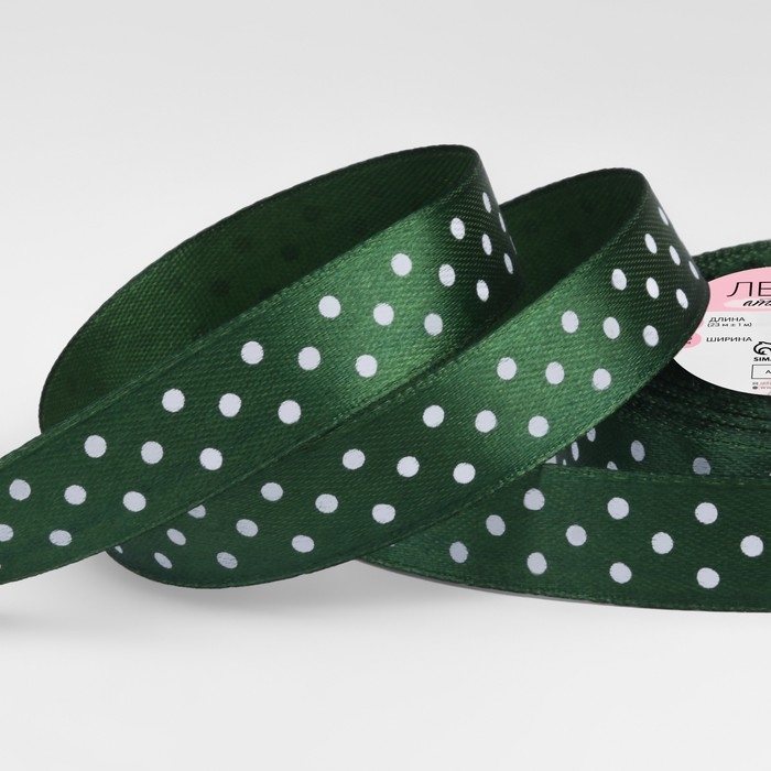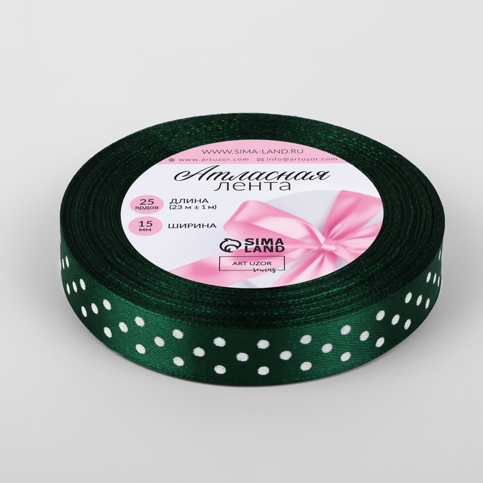 Лента атласная «Горох», 15 мм × 23 ± 1 м, цвет тёмно-зелёный №049