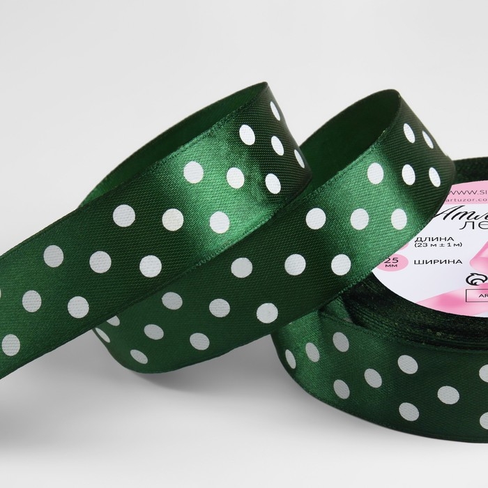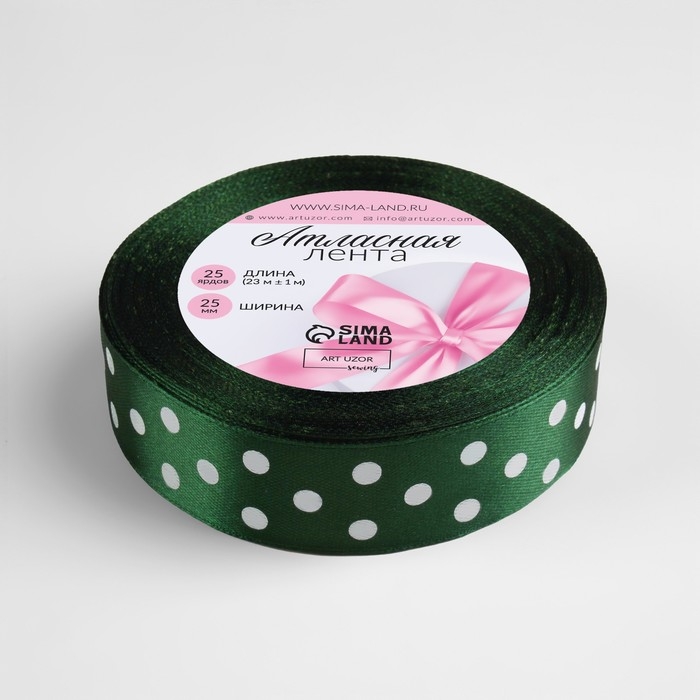 Лента атласная «Горох», 25 мм × 23 ± 1 м, цвет тёмно-зелёный №049