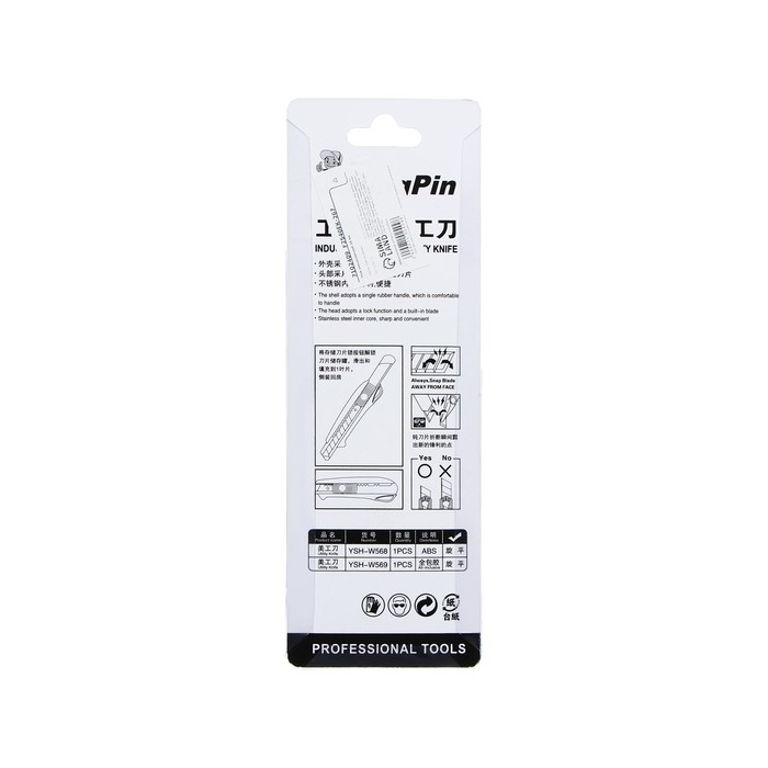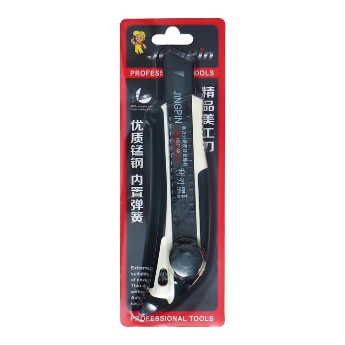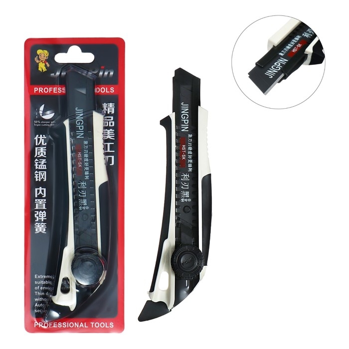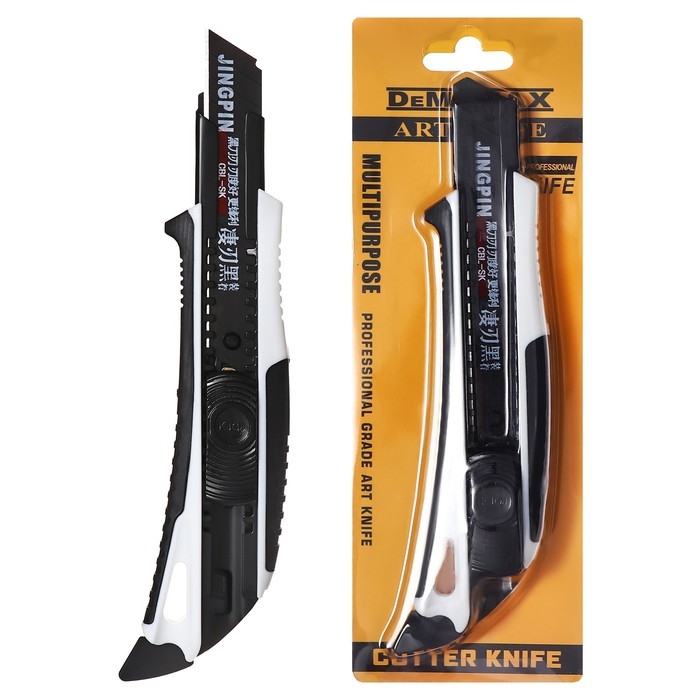 Нож канцелярский, 18 мм, белый, чёрное лезвие