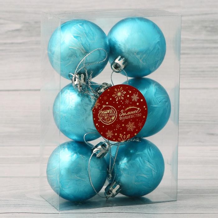 Набор шаров пластик d-5 см, 6 шт "Северина" голубой