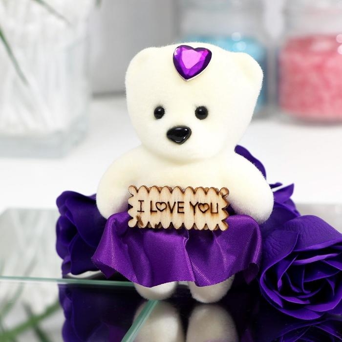 Набор мыльных роз в коробке 8 штук, розово-белые с зайчиком