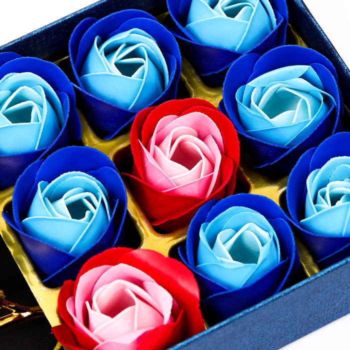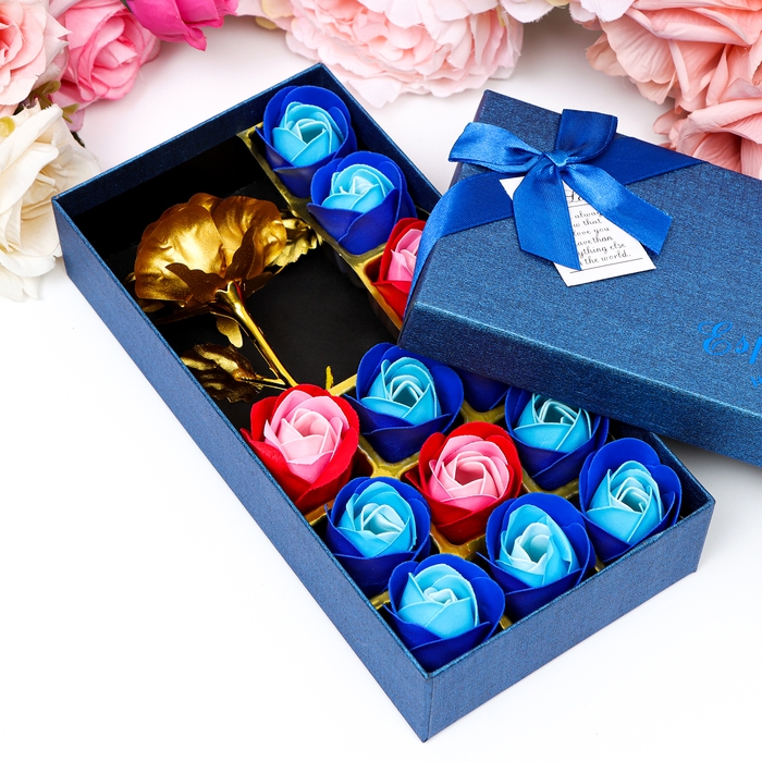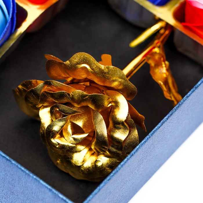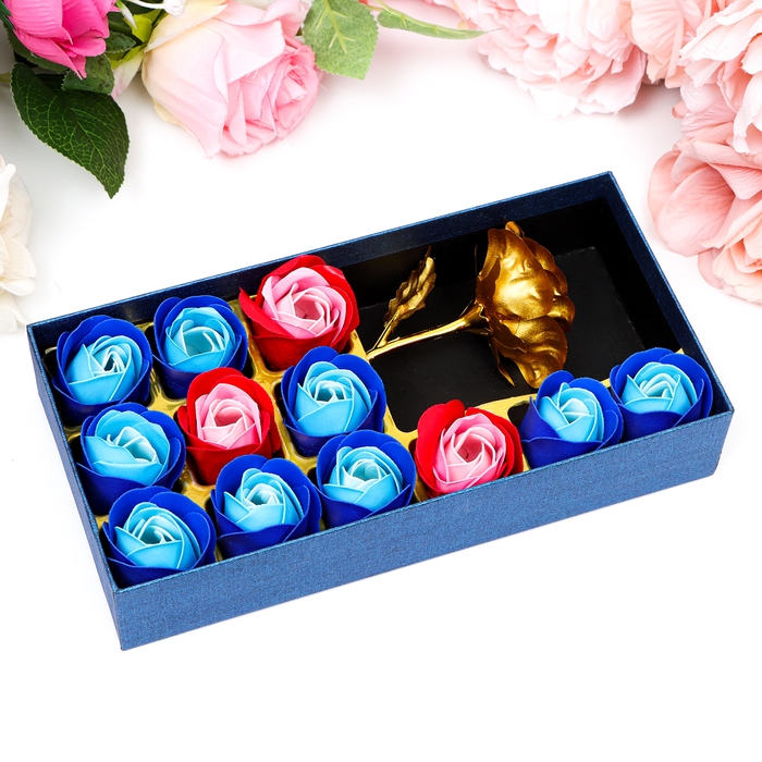 Мыльные розочки цветных оттенков и золотая роза, набор 11 шт