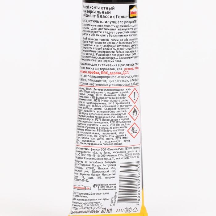 Клей Момент Классик Гель – универсальный клей гелевой консистенции на основе каучука. Предназначен для комбинированного склеивания, фиксации, герметизации различных материалов. Подходит для ремонта и поделочных работ. Благодаря гелевой текстуре, не течёт на вертикальных поверхностях.
