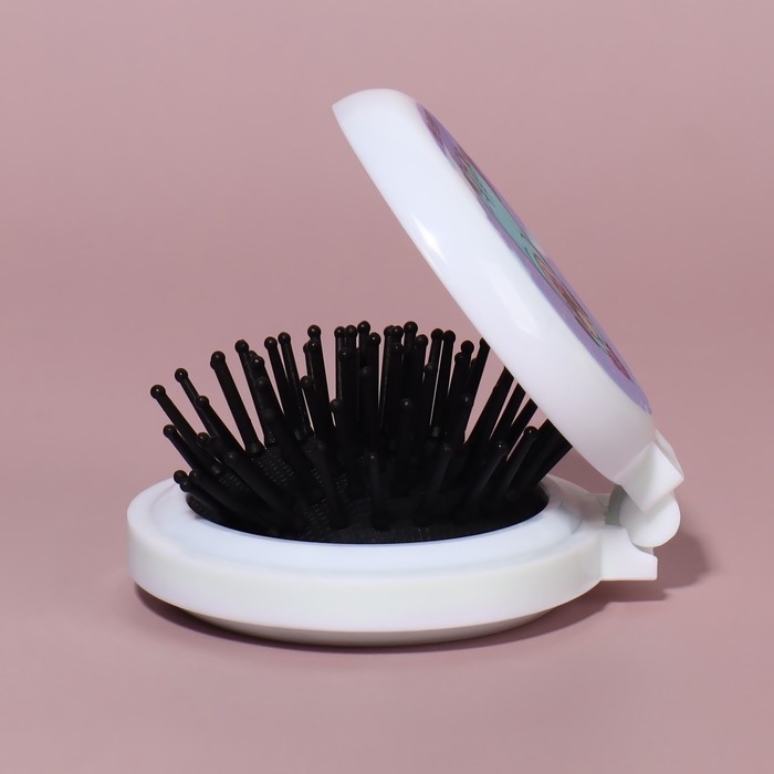 Расчёска массажная «Плюшевые милости», складная, с зеркалом, d = 7,5 см, рисунок МИКС