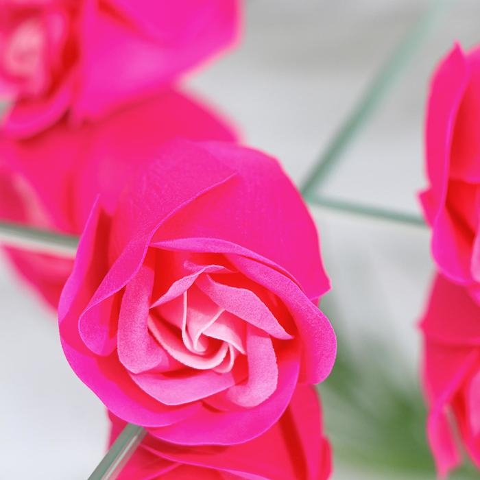 Благодаря точному повторению мелких деталей мыльные розы схожи с настоящими цветами. Композиция наполняет помещение тонким и ненавязчивым цветочным ароматом.