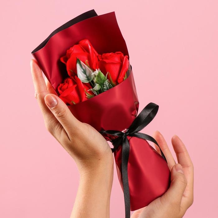 Букет из мыльных лепестков "Алые розы" 17х17х27 см