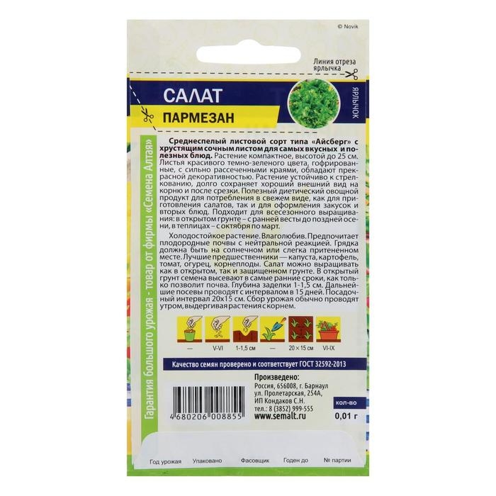 Семена Салат "Пармезан", Сем. Алт, ц/п, 0,01 г