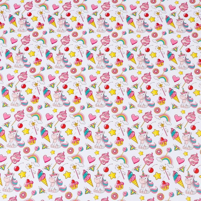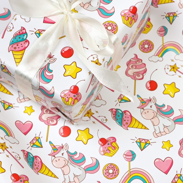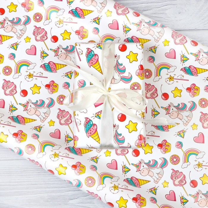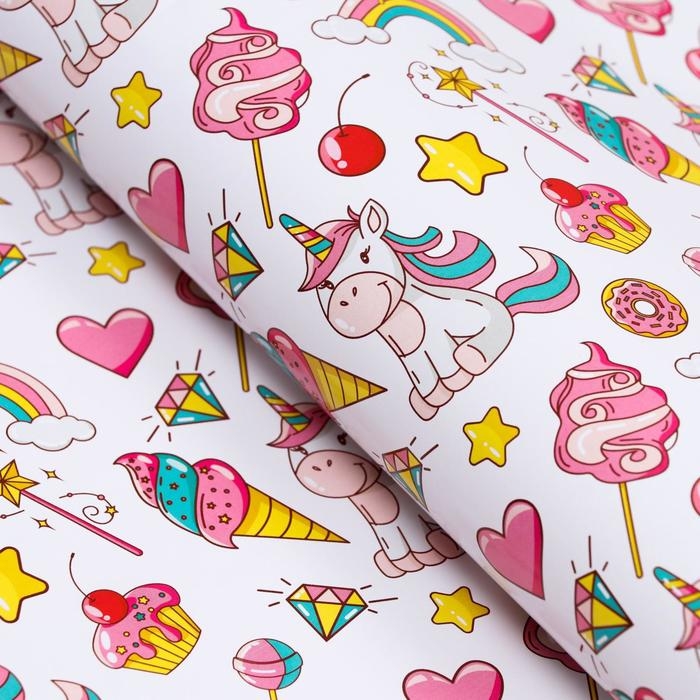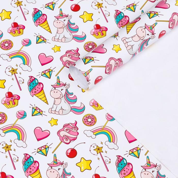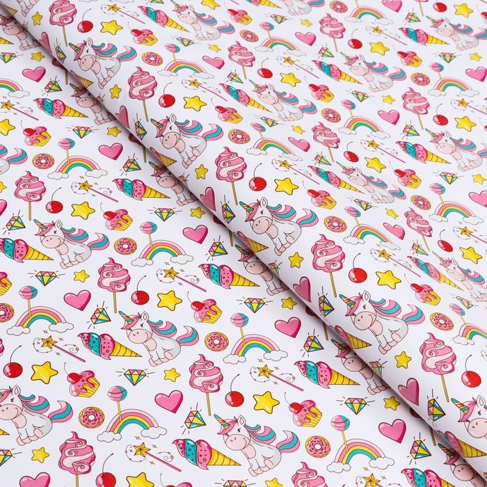 Бумага упаковочная глянцевая "Единорожки", 70 х 100 см, 1 лист