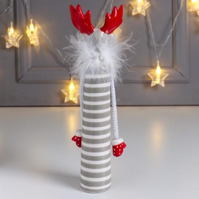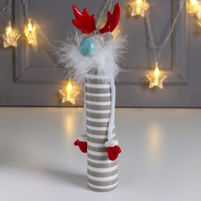 Сувенир керамика "Высокий лось" в полоску с красными рогами 22,3х5х6,3 см