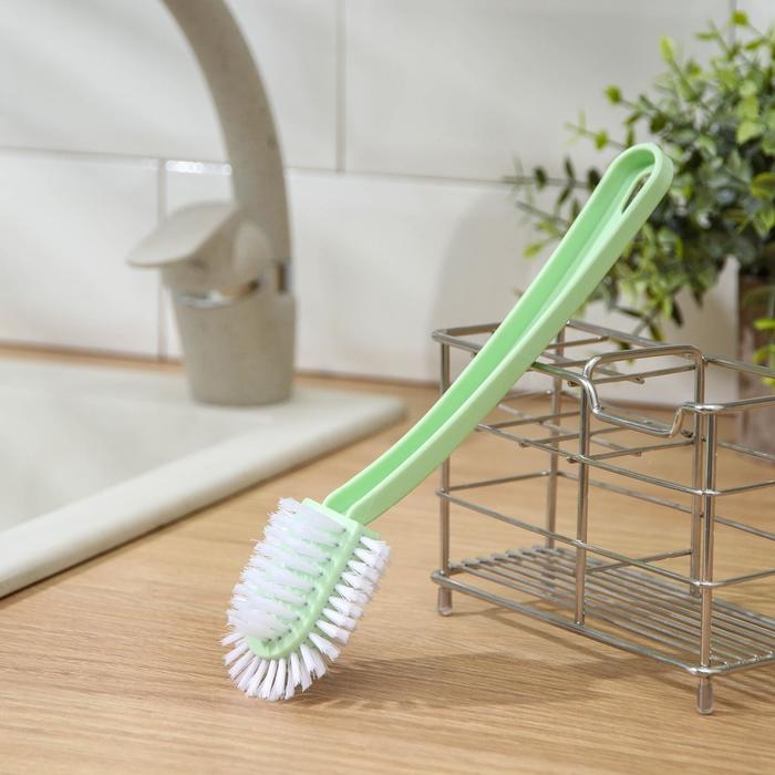 Щётка для посуды Доляна «Сфера» — незаменимый помощник для мам и домохозяек! Эффективно очищает кастрюли, сковородки, противни и гриль от жира и пригоревшей пищи. Удобная ручка обеспечивает комфорт во время использования, а отверстие для подвешивания позволяет хранить щётку аккуратно. Щетина из качественного материала долговечна и безопасна для посуды.