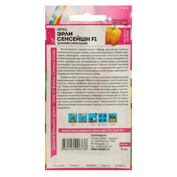 Семена Перец сладкий "Эрли Сансейшн", Seminis, F1, Сем. Алт, ц/п, 5 шт