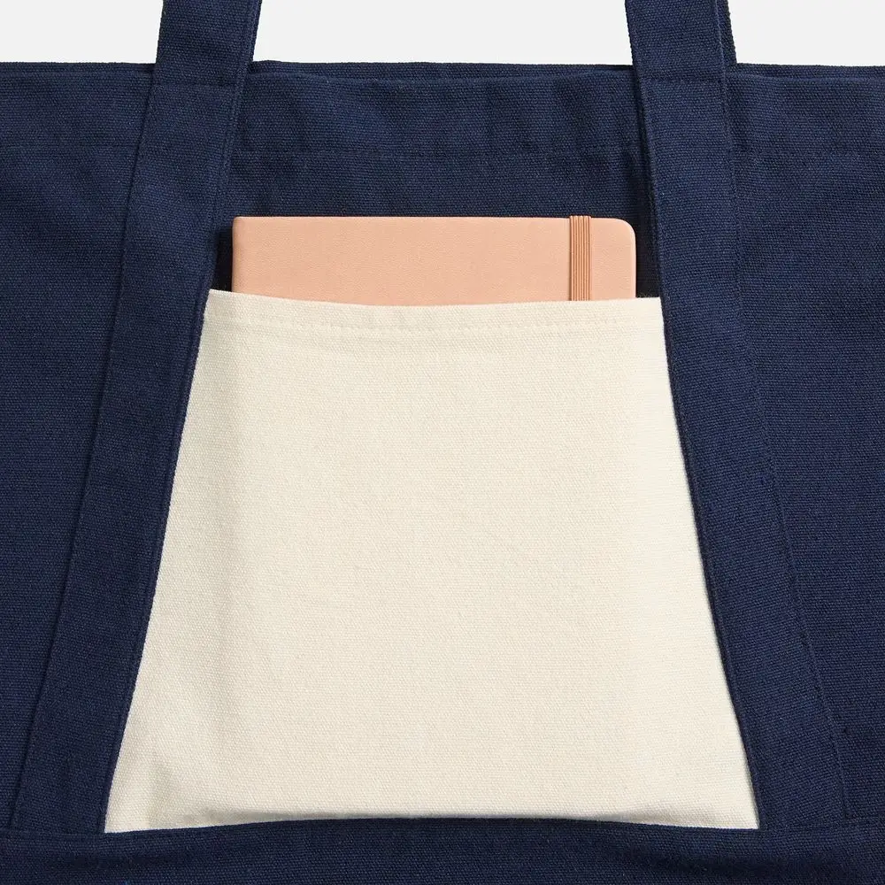 Эта многофункциональная холщовая сумка выдерживает нагрузку до 12 кг, что делает ее идеальным выбором для покупок, прогулок или похода в спортзал. Плотная ткань хорошо держит форму, внутренний и наружный карманы помогут удобно организовать пространство, а прочные швы, обработанные оверлоком, обеспечат долгий срок службы. Шопер на 40% выполнен из переработанного хлопка — дополнительный аргумент для тех, кто заботится о защите природы и экологичном использовании ресурсов.