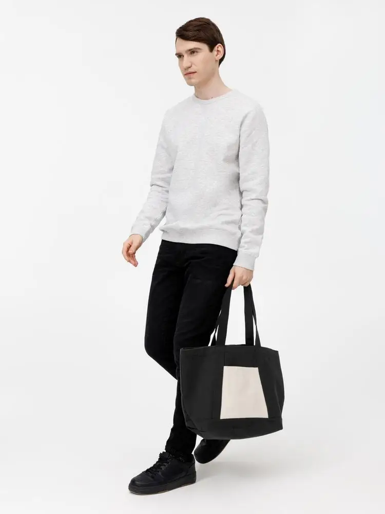 Эта многофункциональная холщовая сумка выдерживает нагрузку до 12 кг, что делает ее идеальным выбором для покупок, прогулок или похода в спортзал. Плотная ткань хорошо держит форму, внутренний и наружный карманы помогут удобно организовать пространство, а прочные швы, обработанные оверлоком, обеспечат долгий срок службы. Шопер на 40% выполнен из переработанного хлопка — дополнительный аргумент для тех, кто заботится о защите природы и экологичном использовании ресурсов.