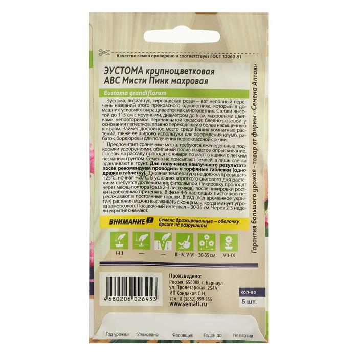 Семена цветов Эустома ABC "Мисти Пинк", махровая, Сем. Алт, ц/п, 5 шт