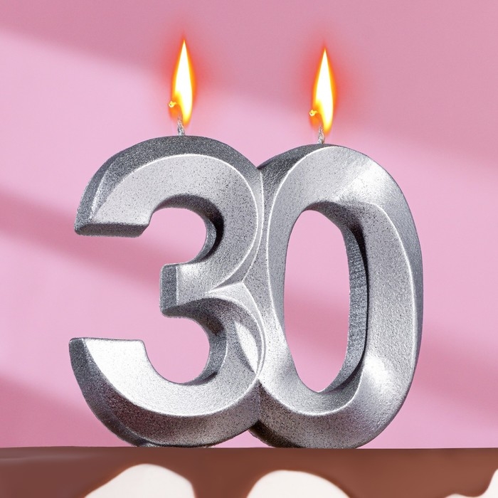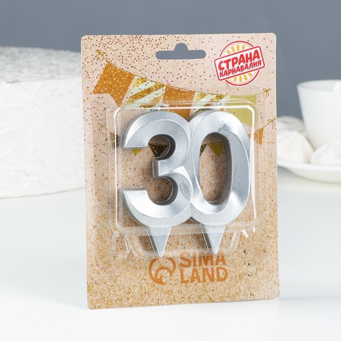 Свеча в торт юбилейная "Грань", цифра 30, серебро, 10 см