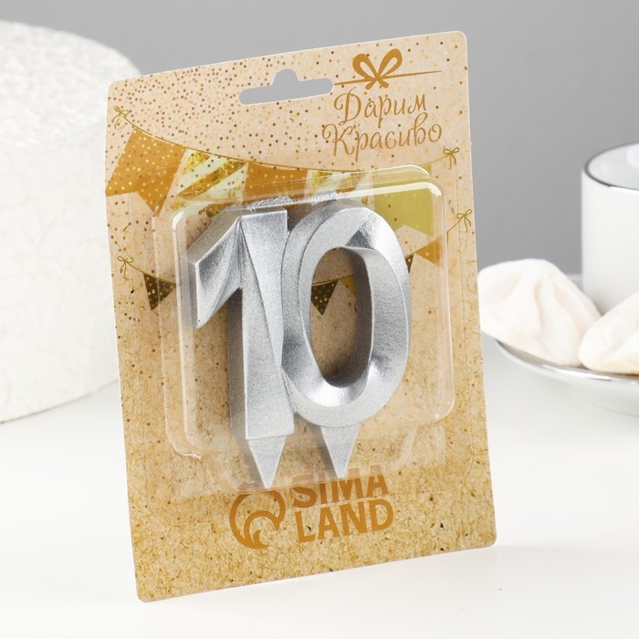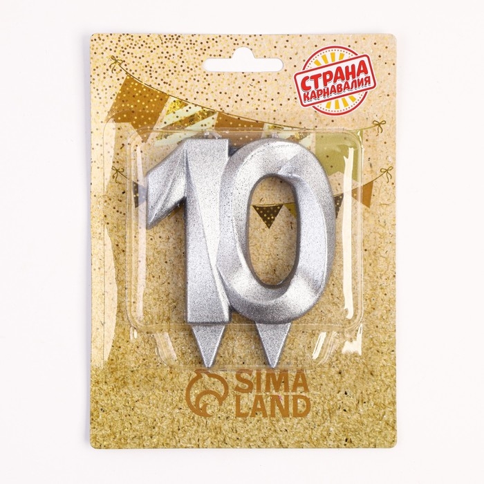 Свеча в торт юбилейная "Грань", цифра 10, серебро