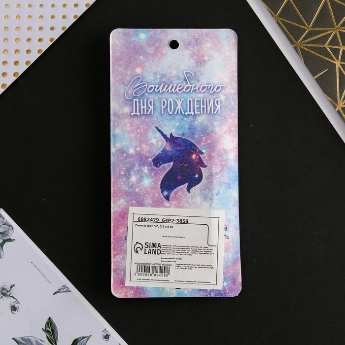 Свеча для торта, цифра «4», 5,5 х 8 см