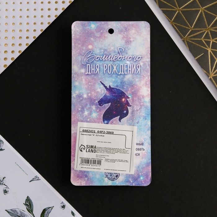 Свеча для торта, цифра «6», 5,5 х 8 см