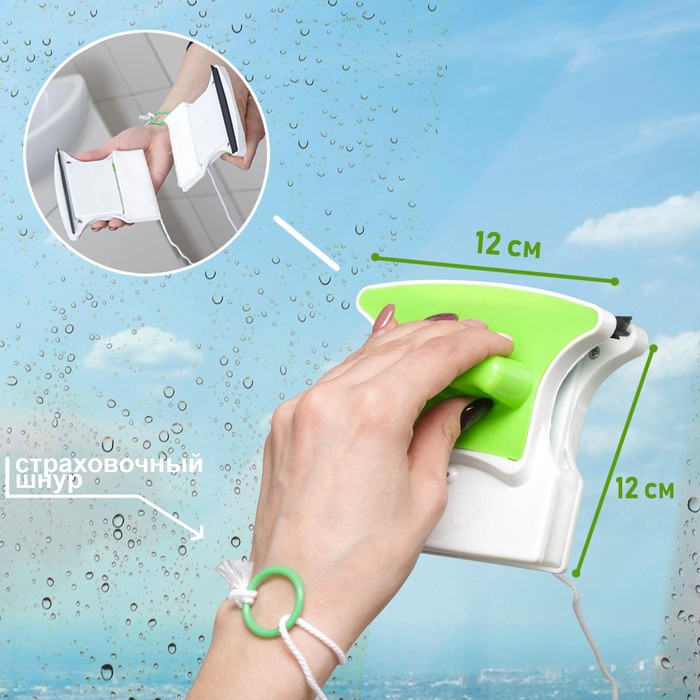 Магнитная щётка для мытья окон с двух сторон Доляна, на стекло 3-8 мм