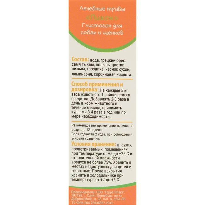 Лечебные травы "Пижон" глистогон, для собак, 50 мл