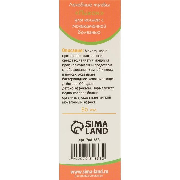 Лечебные травы "Пижон" для кошек с мочекаменной болезнью, 50 мл