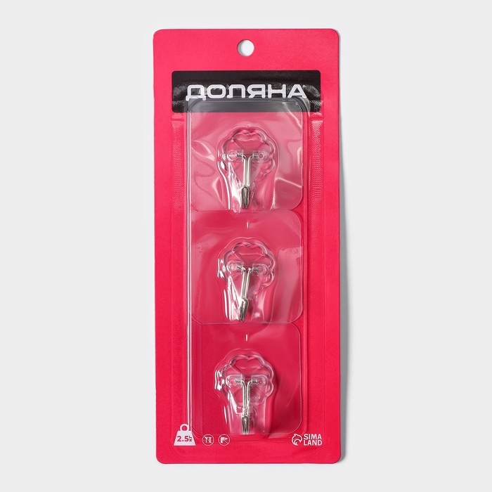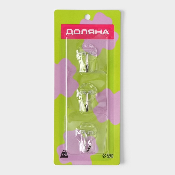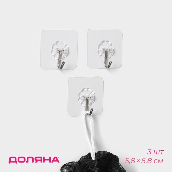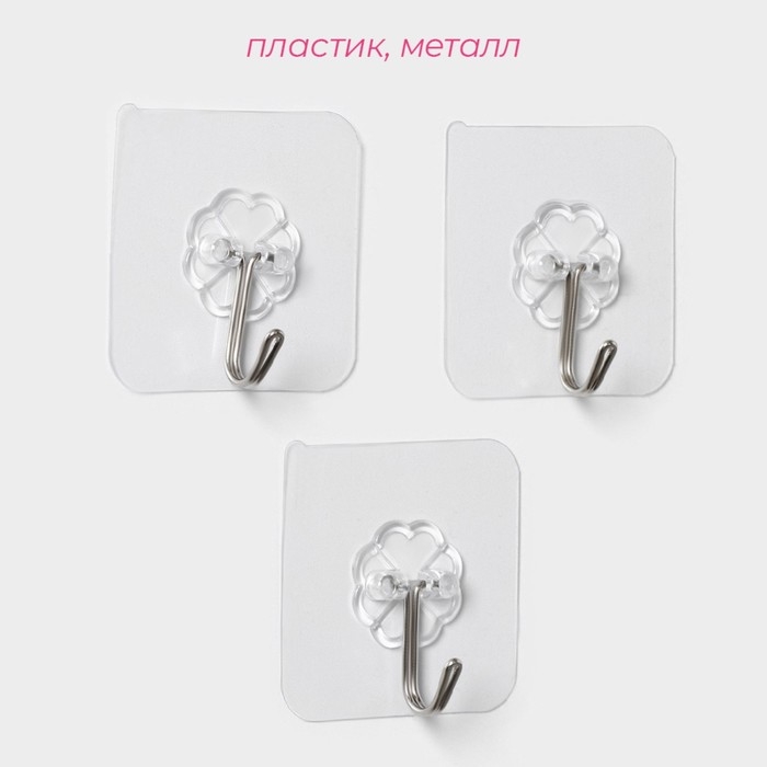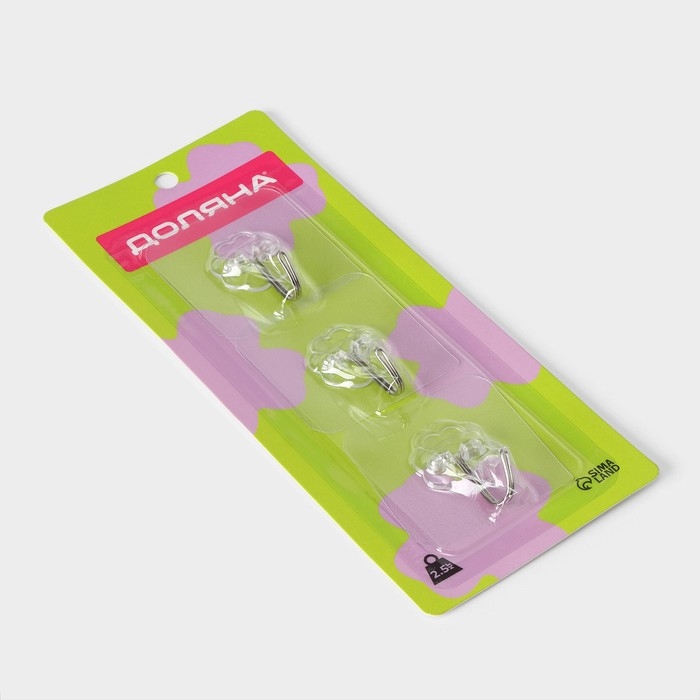 Крючки самоклеящиеся Доляна «Классика», 3 шт, цвет прозрачный