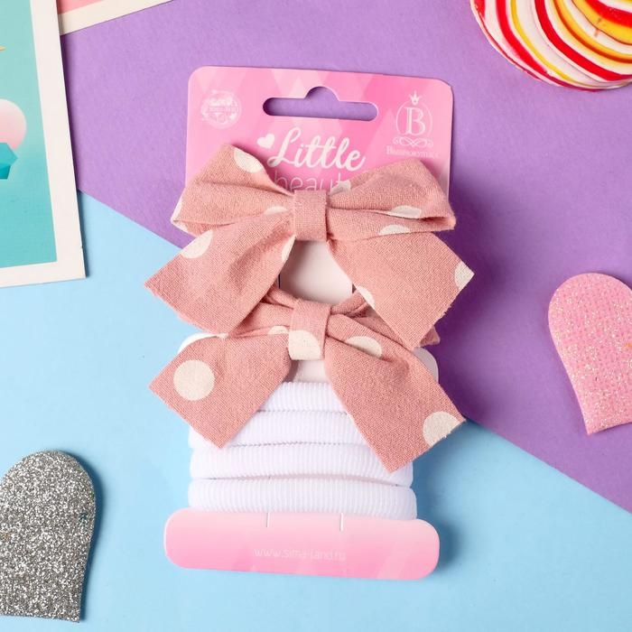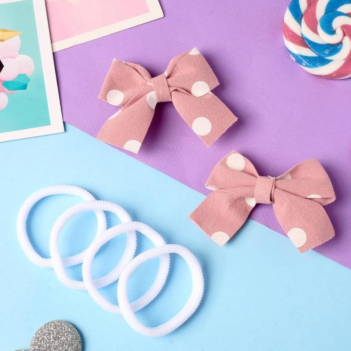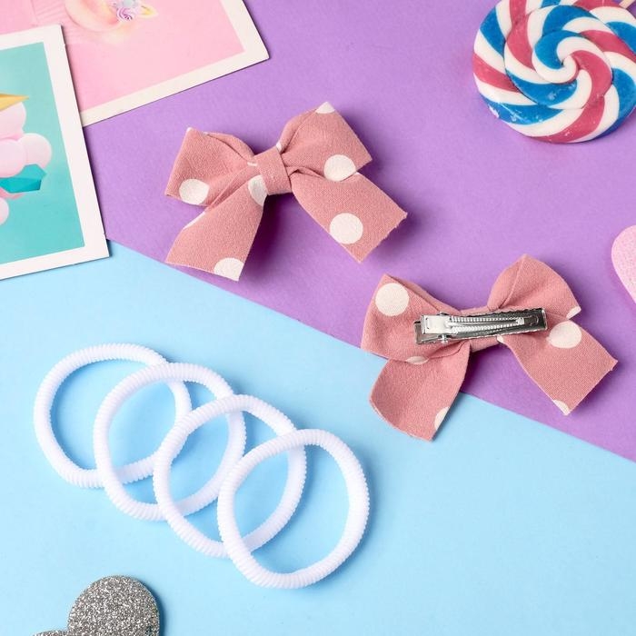 Набор для волос "Аделин" (4 резинки, 2 зажима) белый горох, 6,5х4,5 см, розовый