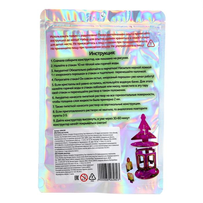 Удивительный опыт позволит вырастить кристаллы из «Морозного порошка». Для сборки игрушки не требуется клей.