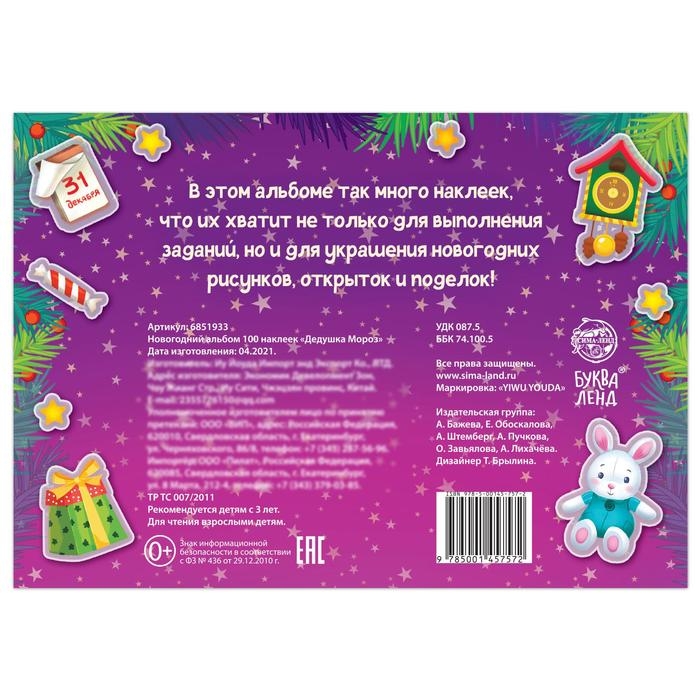 Новогодний альбом 100 наклеек «Дедушка Мороз», 12 стр.