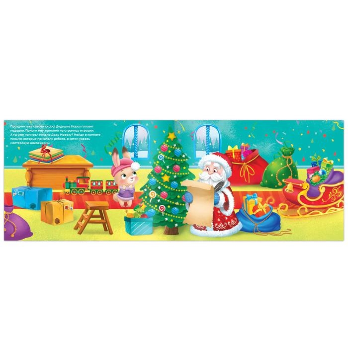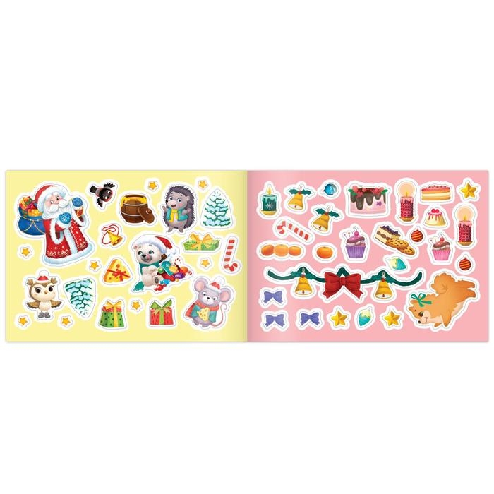 Новогодний альбом наклеек подарит малышу праздничное настроение. Книга предназначена для самых маленьких и подойдёт для занятий с детьми от 3 лет.