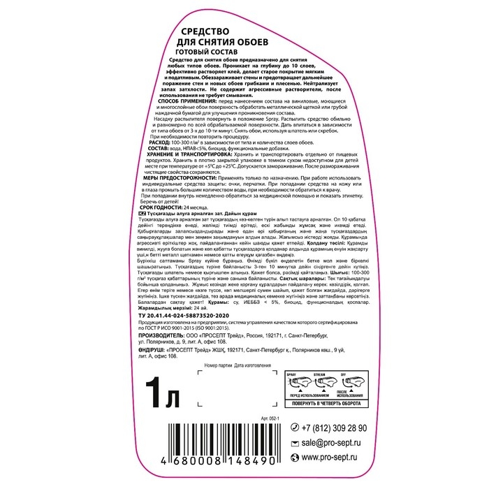 Средство для снятия обоев, готовый состав 1 л