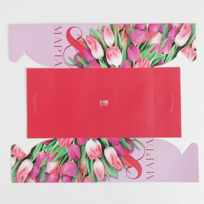Коробка для капкейков, кондитерская упаковка с PVC крышкой, 6 ячеек «Тюльпаны», 8 марта, 23 х 16 х 10 см