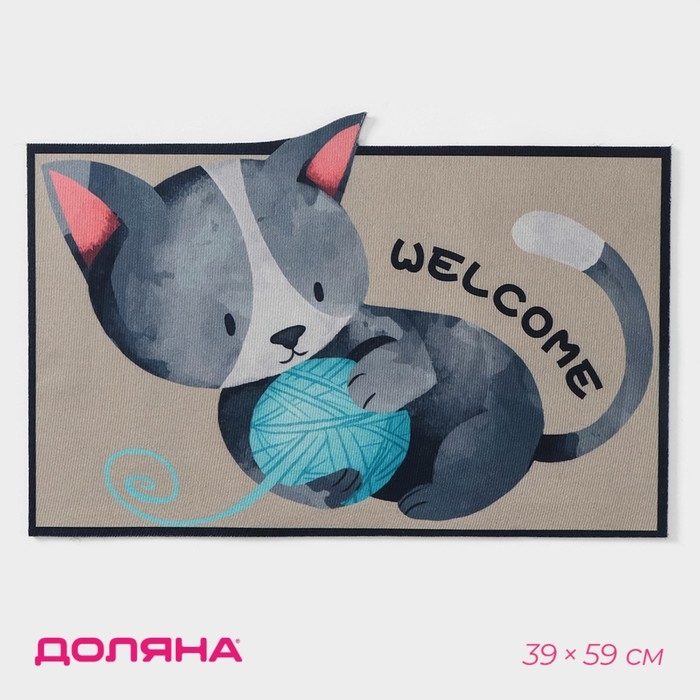 Коврик влаговпитывающий придверный Доляна «Котёнок», без окантовки, 39×59 см