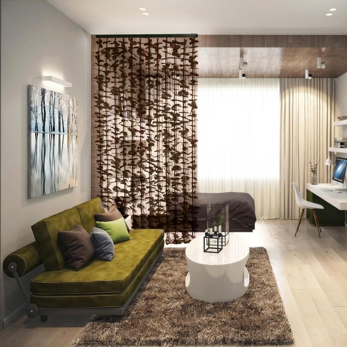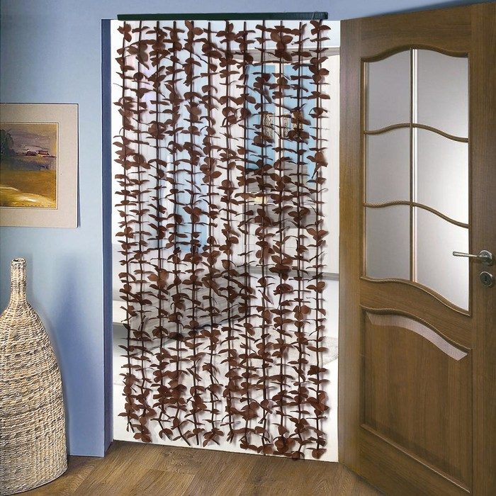 Занавеска декоративная «Листики», 90×170 см, 12 нитей, цвет кофейный