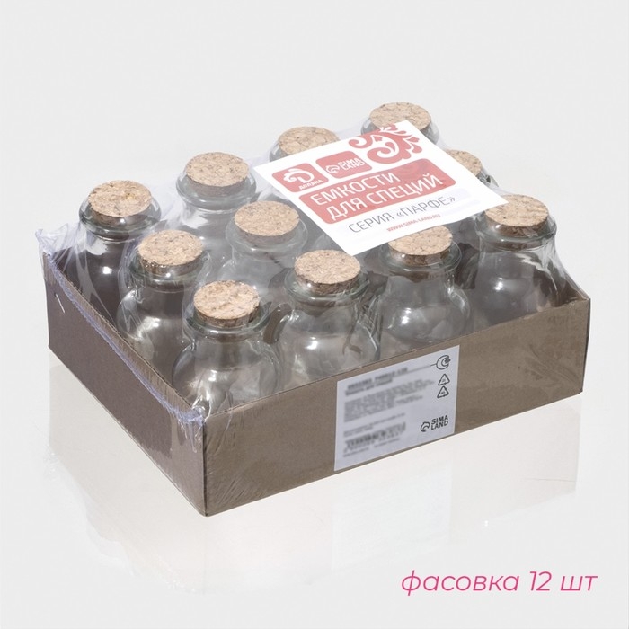 Банка стеклянная для хранения сыпучих продуктов Доляна «Парфе», 70 мл, 4,5×8 см, с пробковой крышкой