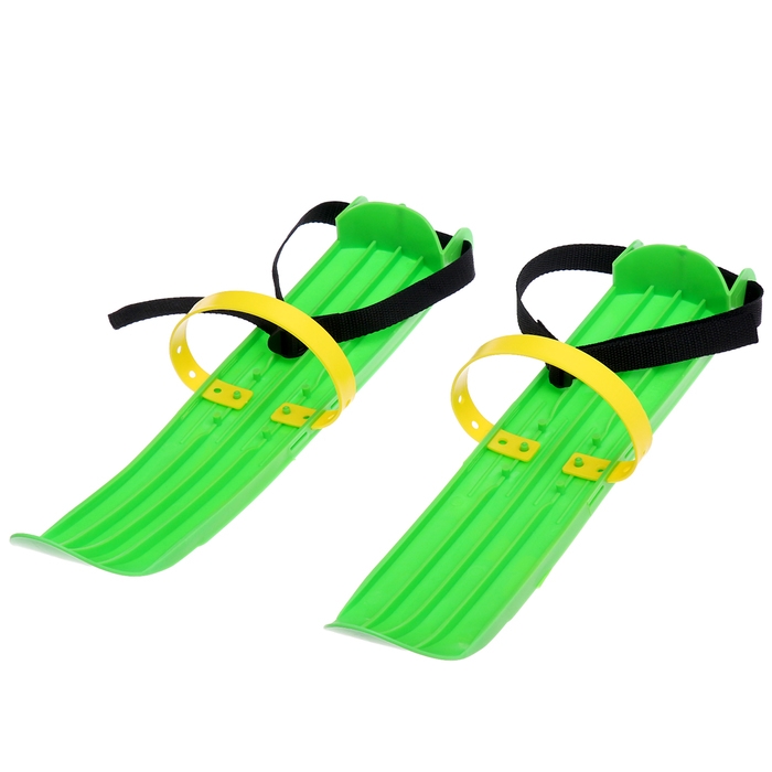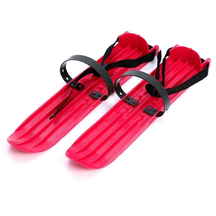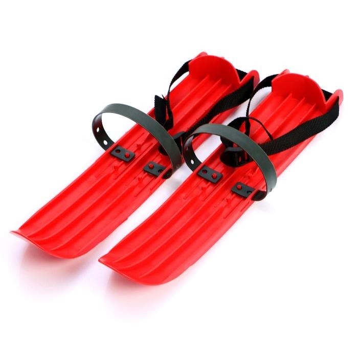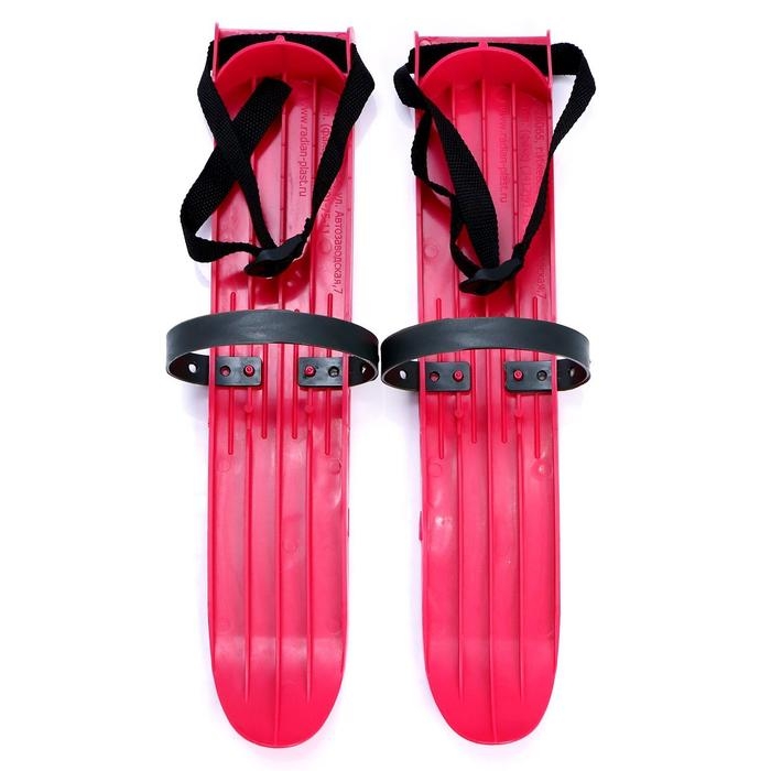 Мини лыжи детские с ремешками, длина 44,5 см, ширина 8,5 см. В комплекте 2 регулируемых ремешка (пластиковый и текстильный) для фиксации ступни и пятки.